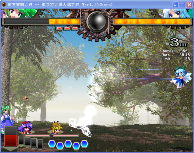 弹幕系统与擦弹系统:作为弹幕格斗游戏,东方绯想天的弹幕仍然是非常的华丽与丰富,通过弹幕和打击的配合可以形成压制,每个人的弹幕有各自的特色,当然在眼花缭乱的弹幕面前如果是光防御的话那等待你的一定是破防的结果。