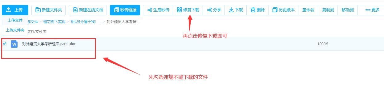 (如下图未修复下载的违规文件是无法下载的)