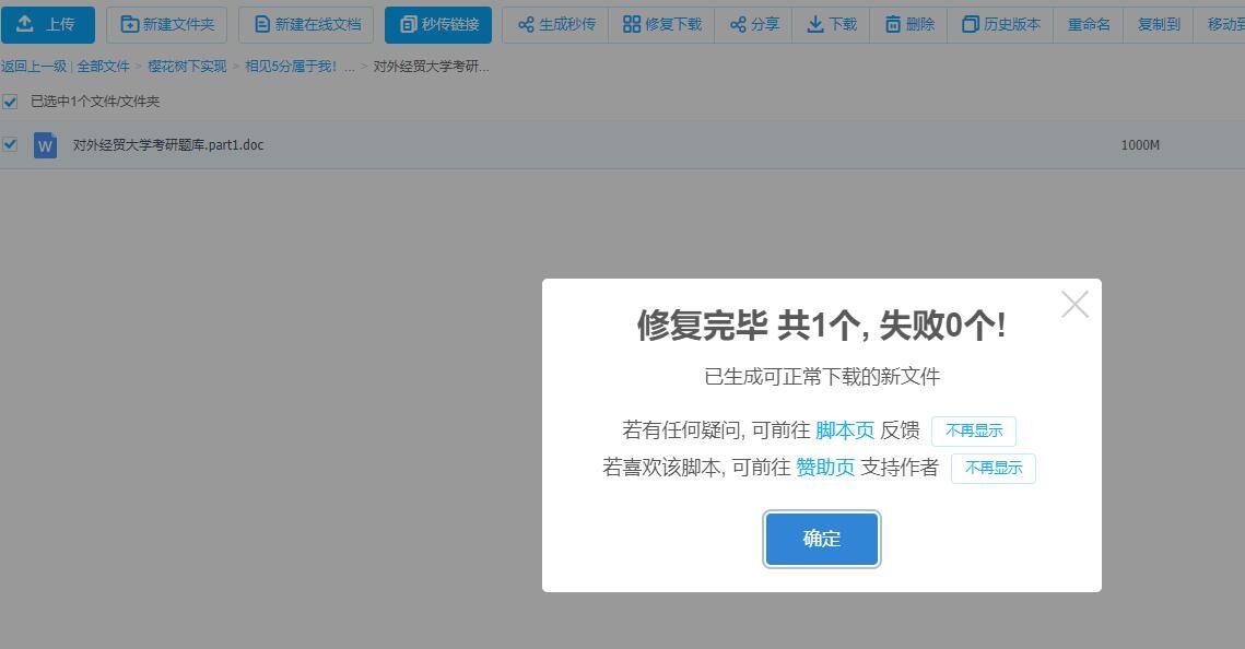 生成新的可下载的文件即可完美修复违规和谐文件成功下载,且无需秒传链接