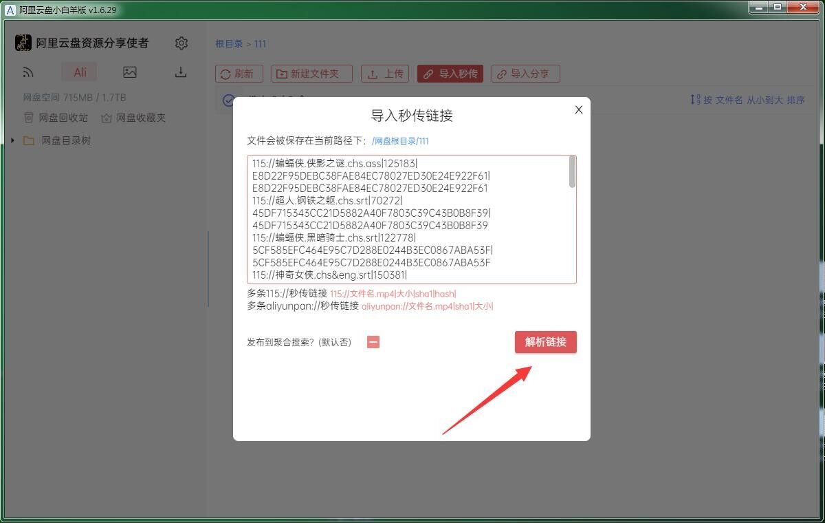目前小白羊可以使用阿里的秒传连接,也可以使用115网盘的sha1秒传连接
